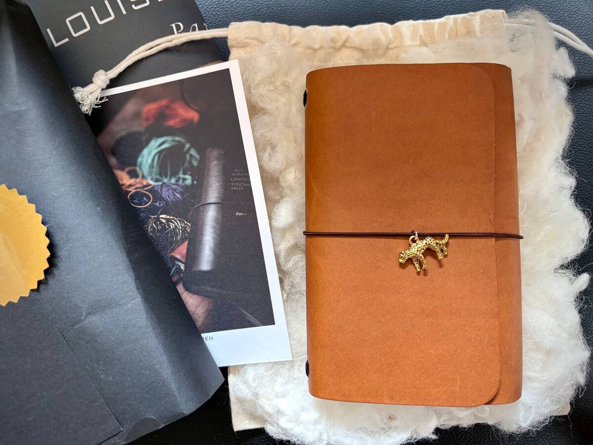 Расскажу для блокнотолюбов, как достать эту прелесть, и сколько стоит. 🔘 Блокнот собирается на оф.сайте как конструктор. Можно выбрать модель, размер, цвет, подвеску, цвет резинки, наполнение, цвет пыльничка. Часть этих опций платная. Моя комплектация вышла на 167 евро. У меня модель Ernest, формат паспорт, цвет виски, одна подвеска леопард, два блокнота в точку, пыльник классический без орнаментов. 🔘Я выслала свои пожелания менеджеру сайта Бандеролька (не реклама, у них дорого, но больше никто не взялся), они сделали заказ за меня на свой склад в Германии. С учетом самого товара, доставки на их склад и стоимости услуг выкупа, вышло 234 доллара (у Бандерольки расчет в долларах). Сумма пополняется на их сайте рублями с РФ карты. 🔘Когда посылка на складе Бандерольки, они ее упаковывают и высылают из Германии через Узбекистан в РФ. Эта доставка еще отдельно стоила 44 доллара. 🔜 В итоге, лично для меня эта цена себя оправдала, как только я увидела сам блокнот. Но! Если есть возможност