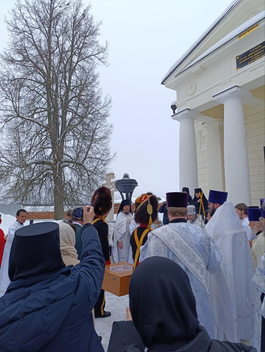 В Спасо-Бородинский монастырь вернулась святыня Ревельского пехотного полка, икона Спаса Нерукотворного. Отправляясь на войну с Наполеоном, генерал Александр Тучков передал икону своей супруге, Маргарите Тучковой. Вскоре генерал был убит в сражении. На месте его гибели Маргарита Михайловна (впоследствии игумения Мария) основала сначала храм в честь Нерукотворного Образа, а затем и женский монастырь. Полковая икона находилась в обители до ее закрытия в 1929 году, а затем была перенесена в Бородинский музей. И вчера, наконец, святыня вернулась в родную обитель, туда, где ей подобает быть. Для нашей обители вчерашнее событие — тоже огромная радость. Ведь Колоцкий монастырь также стоит на Бородинском поле, у его стен накануне Бородинской битвы проходило сражение. Первые насельницы нашей обители начинали свой монашеский путь в Спасо-Бородинском монастыре. Поэтому вчера сердца насельниц двух обителей, а также многочисленных прихожан и гостей слились в едином порыве благодарности Богу