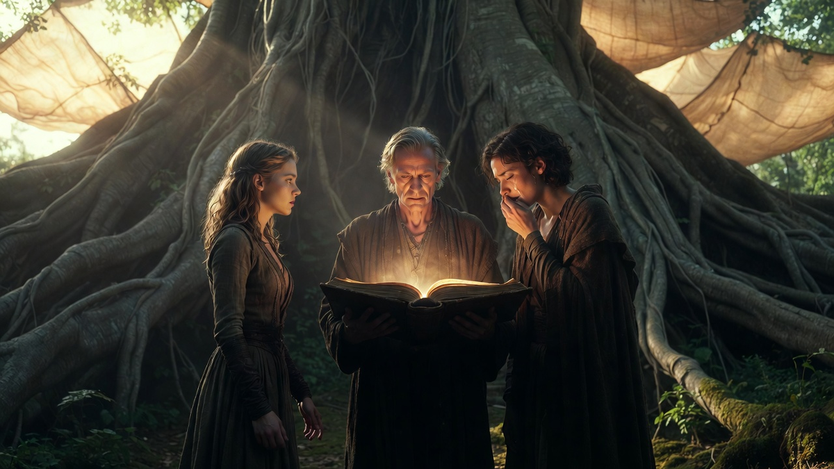 Алиса вышла из Библиотеки Ненаписанных Жизней с тяжёлым сердцем. Книга её несбывшейся жизни всё ещё стояла перед глазами — тёплая, живая, полная того простого счастья, которого у неё никогда не будет. Но она заставила себя отогнать эти мысли. Сейчас было не время для сожалений. Сейчас нужно было действовать. Она достала из кармана дневник Элиана. Страницы пожелтели, но чернила светились тем же серебристым светом. Пора было показать его Мастерам. Пора было потребовать ответов. Мастер и Мастерица нашлись у подножия Древа Историй. Они сидели на камнях, усталые, перепачканные после спуска в бездну, и о чём-то тихо переговаривались. Увидев Алису, они замолчали и поднялись одновременно — странное, непривычное единство. — Ты была в старом павильоне, — без вопроса сказал Мастер. — Мы видели следы. — Да, — Алиса протянула им дневник. — И нашла это. Мастерица взяла дневник дрожащими руками. Её лицо, всегда такое живое и выразительное, вдруг стало каменным. Она открыла первую страницу, прочитала