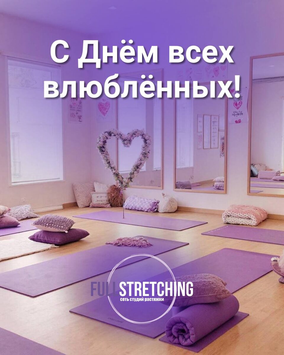 !❤️ Пусть этот День всех влюбленных станет особенным праздником любви, нежности и заботы друг о друге. Пусть ваши сердца наполняются теплом, счастьем и радостью, а каждый новый день приносит вам новые яркие эмоции и вдохновение. А мы с большой любовью к вам, дарим возможность прийти до 21.02 на занятие всего за 1 рубль🤩❤️ Просто напиши нам в чат-@FullStreching_bot Мы благодарим вас за доверие и поддержку нашей студии стретчинга. Вы вдохновляете нас двигаться вперед и создавать атмосферу гармонии и красоты вокруг себя. Желаем вам крепкого здоровья, прекрасного настроения и пусть любовь будет вашим надежным спутником на пути к совершенству тела и души. Обнимаем и поздравляем вас всей душой! С любовью,Команда вашей любимой студии Fullstretching ❤️