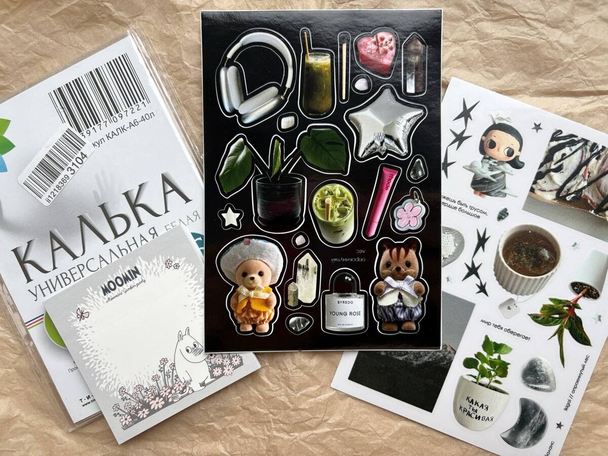 Со ссылками: Наклейки на темном фоне Наклейки на светлом фоне Калька А6 для принтера Еще показываю вам стикеры с Мумми, которые забыла вчера показать и две кальки, которые напечатала сама для блокнота. У продавца наклеек в профиле можно получить 100 бонусов, не забывайте пользоваться!