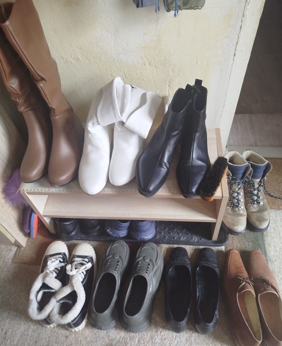 Моя актуальная обувная полка в феврале. Да и всю зиму она актуальна. 😁