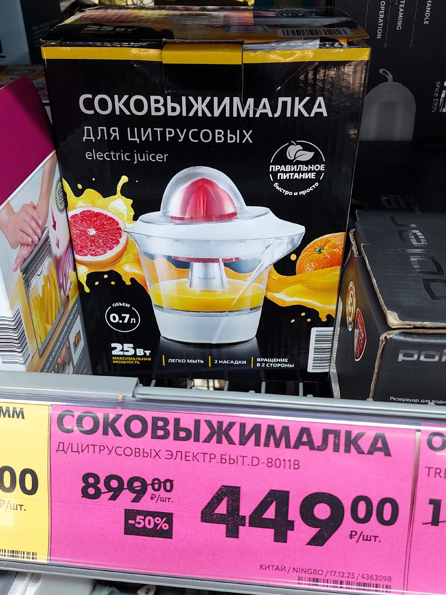 Более, чем в 2 раза стала в Чижике дешевле электрическая Соковыжималка для цитрусовых. Две насадки, вращение в обе стороны и легко мыть после использования. Новая цена 499 рублей взамен 899.