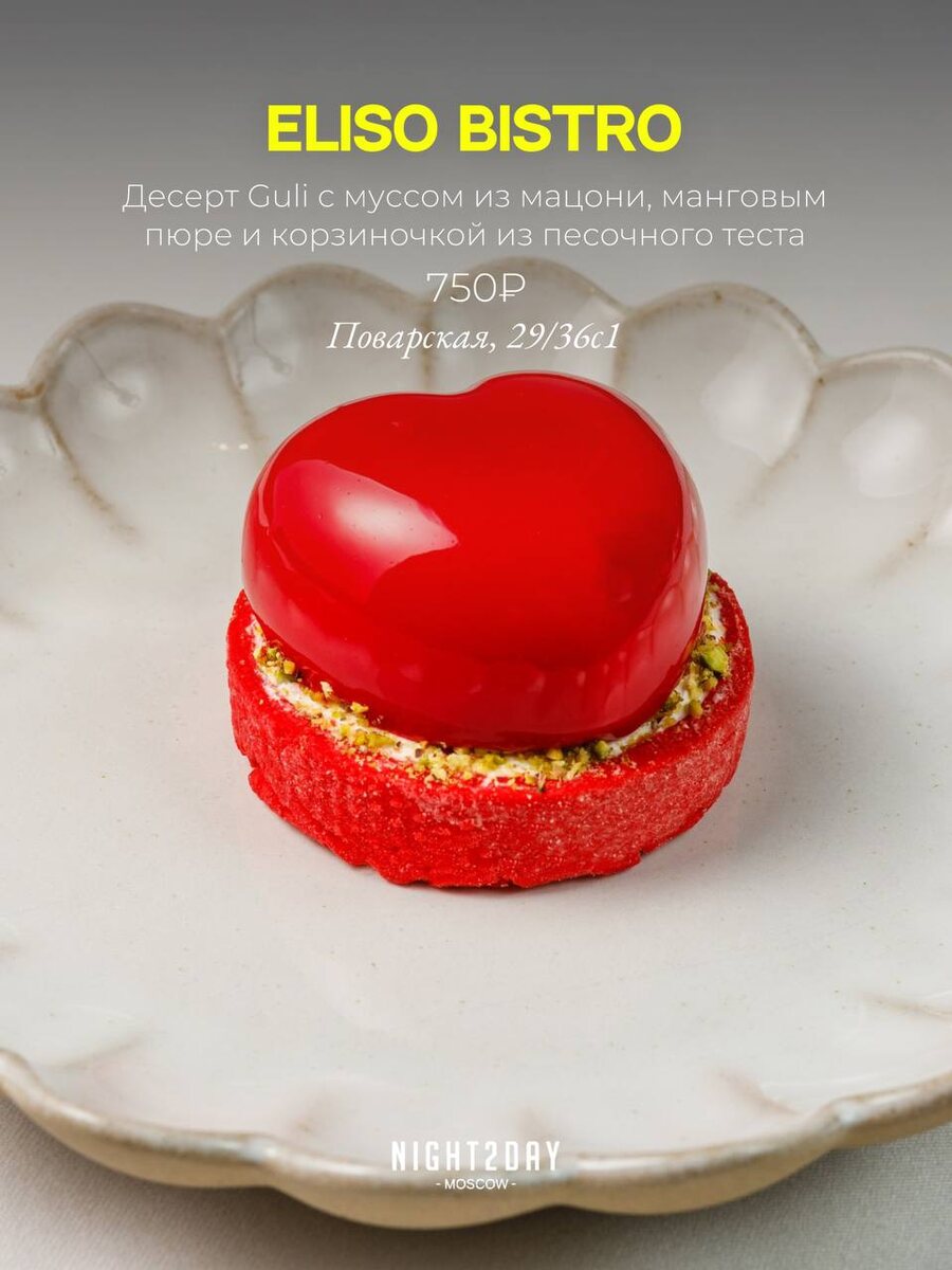 Love in the air! Собрали самые романтичные десерты в московских ресторанах: от сладких комплементов до полноценных тортов на заказ. Выбирайте, что попробуете сегодня.