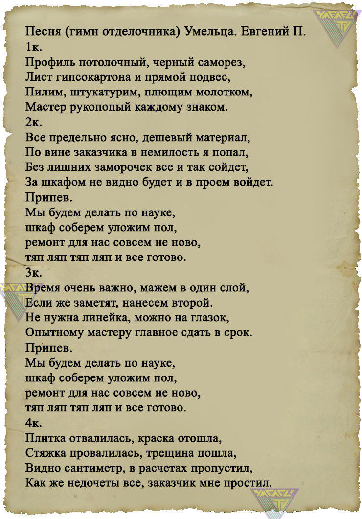 Песня (гимн отделочника) Умельца. Евгений П.