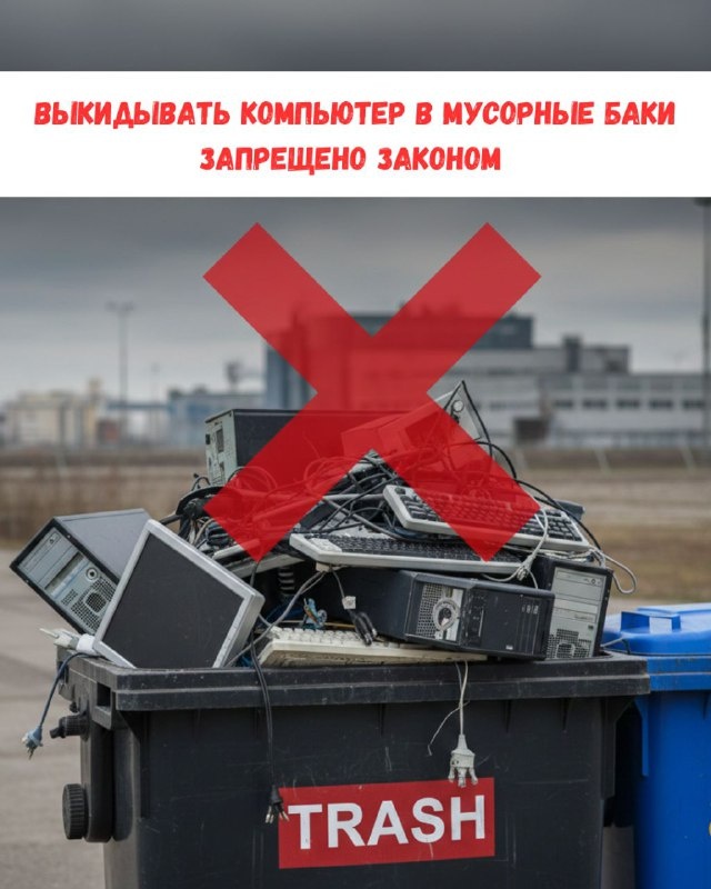 Каждый год в России образуется 1,5 млн тонн электронных отходов, и только 5% перерабатывается. И это реальная проблема как для экологии, так и для экономики. Так есть часть экономики, которая рассчитана на замкнутый цикл и возврат ресурсов в оборот. Выбрасывать компьютеры, как и любую электронику в общий мусорный бак нельзя. Так же нельзя его оставить и на бункерной площадке. За это предусмотрен огромный штраф, 250 000 рублей.