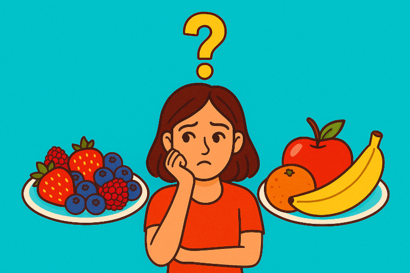 Мы привыкли считать, что фрукты — это безусловная польза, ведь они богаты витаминами и микроэлементами. Но всё ли так однозначно, когда речь идёт о фруктозе? Разберёмся подробнее. Фруктоза — это простой сахар (моносахарид), который в естественном виде содержится во фруктах, некоторых овощах и мёде. В больших количествах она присутствует в кукурузном сиропе, сиропе агавы, винограде, финиках. Эти продукты нередко воспринимаются как более «здоровая» альтернатива обычному сахару, однако из-за высокого содержания фруктозы их употребление требует умеренности. Для здорового человека безопасным считается потребление примерно 30–40 граммов фруктозы в сутки. На практике это не так уж мало: такое количество содержится примерно в пяти средних яблоках, 80 граммах мёда или значительном объёме сладостей. Превысить норму довольно легко, особенно если в рационе присутствуют соки, десерты и сладкие перекусы. Главная особенность фруктозы заключается в том, что для её усвоения не требуется инсулин. В отли