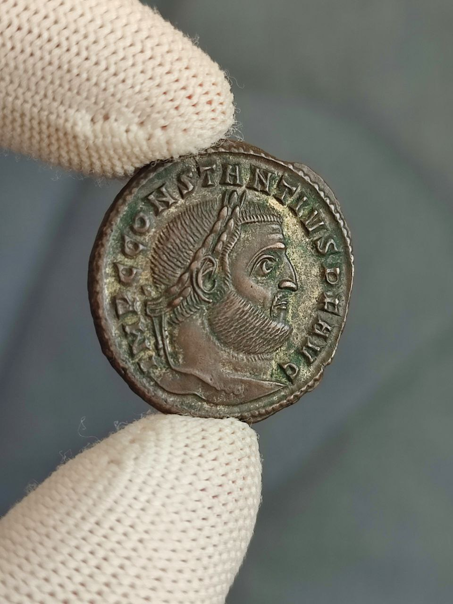 Портрет в лавровом венке, профиль вправо. И вот здесь стоит обратить внимание на стиль: поздняя тетрархия сознательно унифицирует императорские лица. Все портреты на монетах тетрархов того времени были плюс-минус похожи друг на друга с минимальными отличиями. Тем самым подчёркивая их равенство.