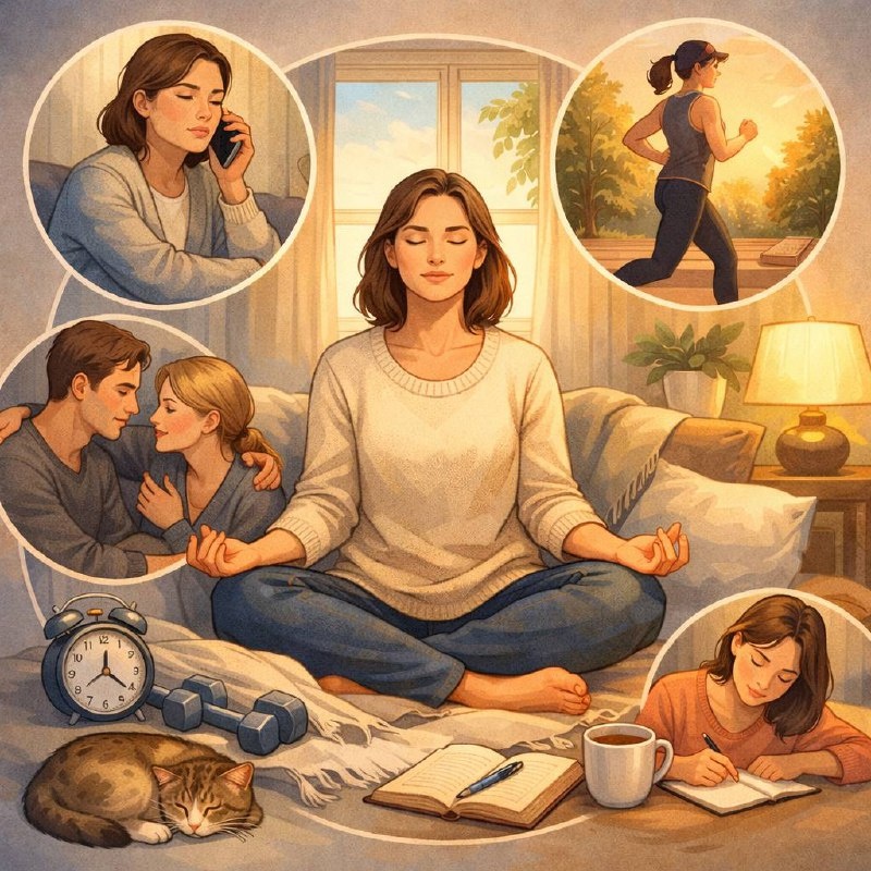 Вот как это обычно выглядит. Во-первых, он чувствует. Появляется тревога, напряжение, раздражение — и он это замечает. Он может сказать: «Мне сейчас тяжело», «Я волнуюсь», «Я злюсь». Эмоция распознаётся, а не подавляется или отыгрывается. Во-вторых, стресс имеет границы. Да, он переживает, но не 24 часа в сутки. Есть периоды активации — есть периоды восстановления. Он способен переключаться: после сложного разговора пойти гулять, позвонить близкому, заняться спортом. В-третьих, тело реагирует, но возвращается в баланс. Учащается пульс, может нарушиться сон на пару дней, появляется мышечное напряжение. Но организм восстанавливается. Нет ощущения постоянной «боевой готовности» неделями. В-четвёртых, мышление остаётся гибким. Даже в тревоге человек способен видеть варианты, просчитывать шаги, обращаться за помощью. Катастрофизация может появиться, но она не захватывает полностью. В-пятых, сохраняется чувство «я справлюсь». Не в формате иллюзии всемогущества, а в виде внутренней опоры