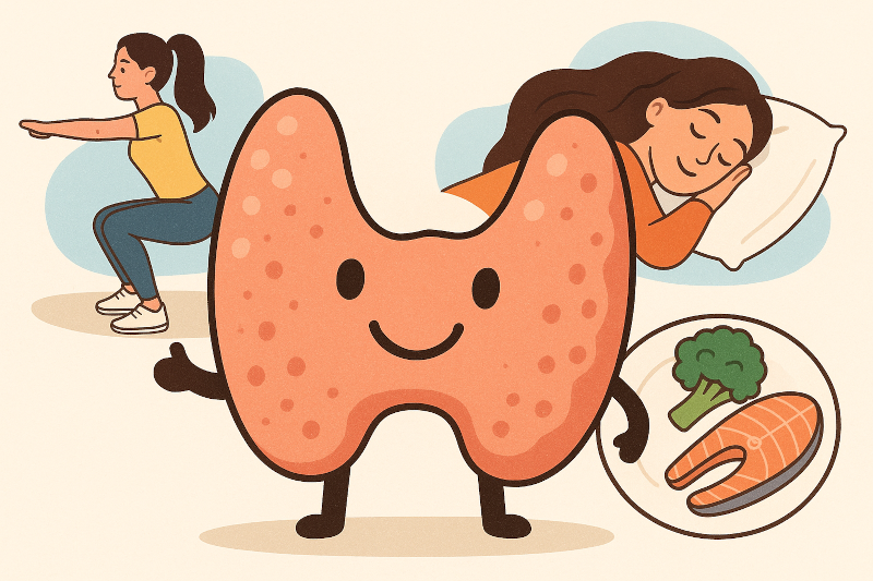 Даже простые упражнения — несколько приседаний или отжиманий — стимулируют обмен веществ и способствуют активации Т3 в мышечной ткани. Регулярная активность улучшает кровообращение и функцию печени.