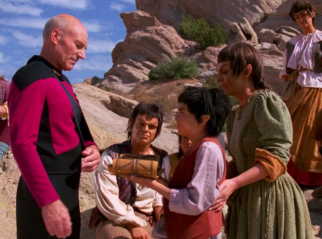 События и культ вокруг «Бога Пикара» формируются мгновенно. Жрецы и старейшины племени начинают интерпретировать это «явление», и кульминацией становится решение принести советника Диану Трой в жертву, чтобы умилостивить разгневанное, по их мнению, божество, то есть за один эпизод нам показывают, как развивается вся религия в мире.