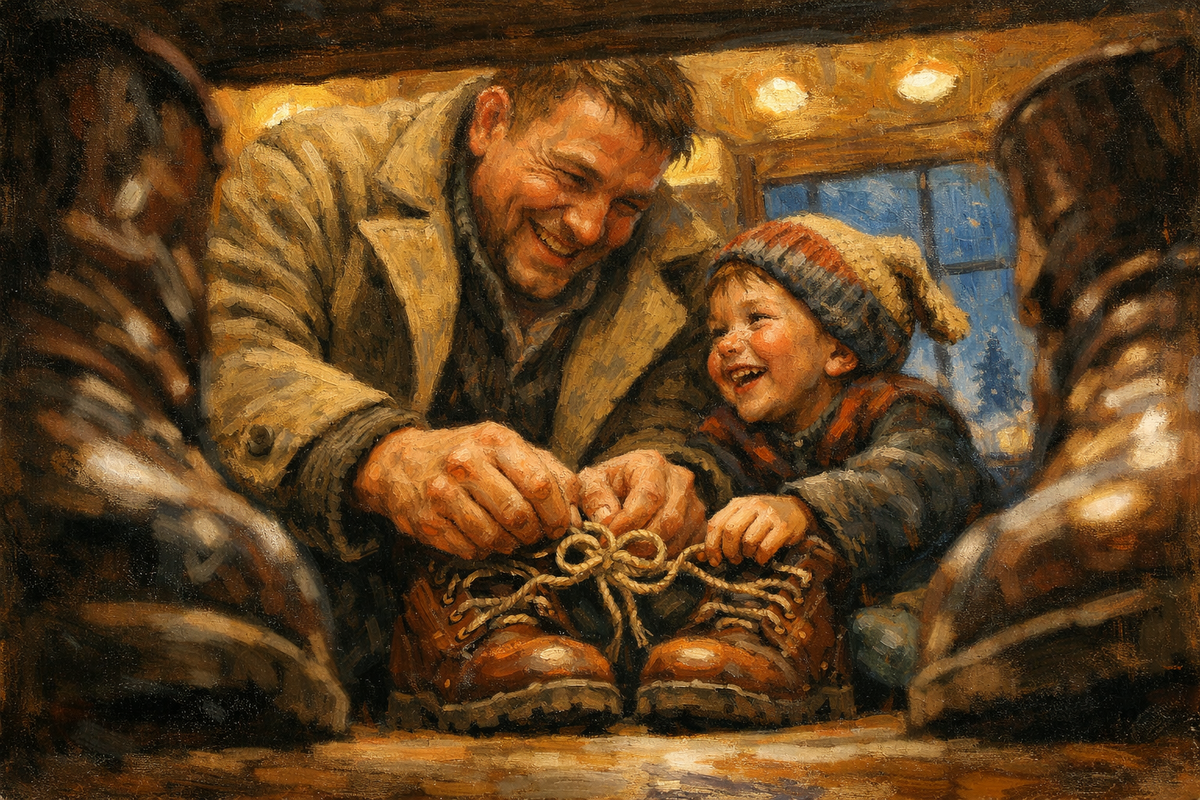 Алексей медленно поднял голову. Узел был завязан — кривоватый, смешной бантик на старом ботинке. Но мужчина не вставал с колен.