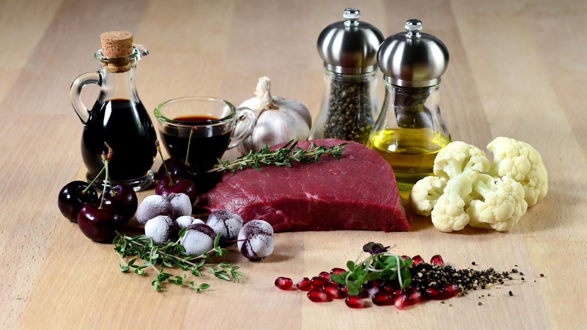 Рецепт ужина для особенного вечера 14 февраля с сочным мясом, ярким соусом и нежным гарниром, но чтобы всё было полезно, низкоуглеводно и без лишнего жира. Нежное постное мясо в кисло-сладком вишнёвом глазури, на подушке из цветной капусты «рис» и с гранатовыми акцентами. Готовится быстро - выглядит празднично и очень аппетитно❤️✨ 🛒Ингредиенты (на 1 порцию): Говядина с соусом: • Постная говядина (стейк или вырезка) - 170 г • Вишня (свежая или замороженная) - 80 г • Бальзамический уксус - 1 ч. л. • Чеснок - 1 зубчик • Оливковое масло - 1 ч. л. • Тимьян или розмарин - по вкусу • Соль, перец - по вкусу Гарнир: • Цветная капуста - 250 г Топпинг: • Зёрна граната • Микрозелень • Чёрный перец крупного помола 👩🍳 Приготовление (пошагово): 💡Вариант без сковороды: Говядину можно запечь в духовке при 200 °C 8–12 минут (в зависимости от толщины), а вишнёвый соус приготовить в микроволновке 2-3 минуты. ⏱️Время приготовления: ~30 минут (из них активных - около 15 минут) 📊КБЖУ на 1 порцию: ≈ 410