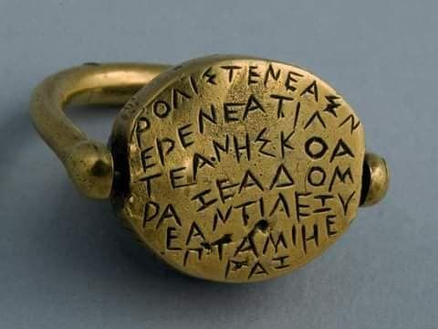 В начале XX века в болгарском селе Езерово был найден клад с золотыми предметами. Среди этих предметов выделялось кольцо с искусно выгравированной мелкой надписью, составленной греческими буквами. С момента обнаружения кольца учеными и любителями многократно предпринимались попытки объяснить или дешифровать эту надпись. Надпись читали по-древнегречески, по-латыни, по-литовски, по-грузински, по-славянски... Но все предложенные интерпретации носят фантазийный и неубедительный характер. По хронологии (середина 1 тыс. до н.э.) и географии можно ожидать, что текст составлен на фракийском - языке воинственного народа давних Балкан, о котором почти ничего не известно. Геродот считал фракийцев самым многочисленным народом на земле после индусов. Он писал, что если бы фракийские племена объединились под единым командованием, они бы стали самой сильной армией мира. Не будем также исключать, что это был подарок любимой от не очень грамотного ухажёра, только что выучившего греческие буквы 😉