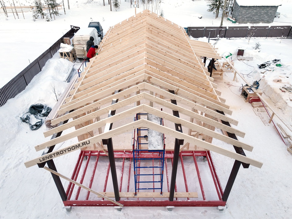 Закончили сборку каркаса и произвели работы по установке стропильной системы, далее приступим к монтажу основания под укладку кровельного покрытия из металлочерепицы "Grand Line". В этой локации мы осуществляем строительство одноэтажного каркасного дома с террасой по проекту Scandi M Воронино. Общий размер дома 14.5х6 м, жилая основа 12х6 м + терраса 2,5х6 м. Из помещений в доме предусмотрены кухня-гостиная, две спальни, совмещенный СУ, котельная, гардеробная и холл. За процессом строительства можно следить по тегу #воронино_scandi #ленстройдом #каркасныедома #воронино_scandi lenstroydom.ru +7 (812) 408-30-08 скандимини.рф +7 (812) 504-80-80 clck.ru/3Q8fnK