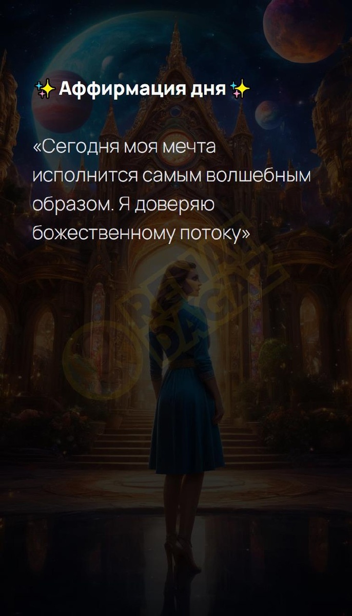 ?Аффирмация дня? «Сегодня моя мечта исполнится самым волшебным образом. Я доверяю божественному потоку» Архитектура вашей души | Ваш Ангел и Демон T | VK | Pin | YouTub | Dzen #опыт #короткоиясно #новаяжизнь #твояреальность #психологияженщины #светлыймир #любовьбезграниц #архитекторсудьбы #богатство #14число #14февраля