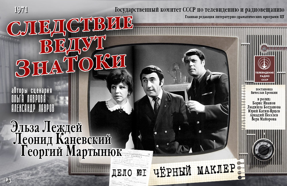14 февраля 1972 года на Советском телевидении состоялся премьерный показ телевизионного художественного фильма «Следствие ведут ЗнаТоКи. Чёрный маклер»