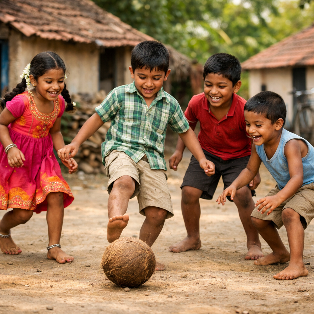 И вот вышла я с ведром и тряпкой и вижу, как средние по возрасту детки играют в кокос. Да-да, не в мяч, а в кокос. Маленький кокосик, отчего-то сброшенный пальмой вниз и не имеющий шанса стать настоящим орехом, стал игрушкой для деток безработного отца.