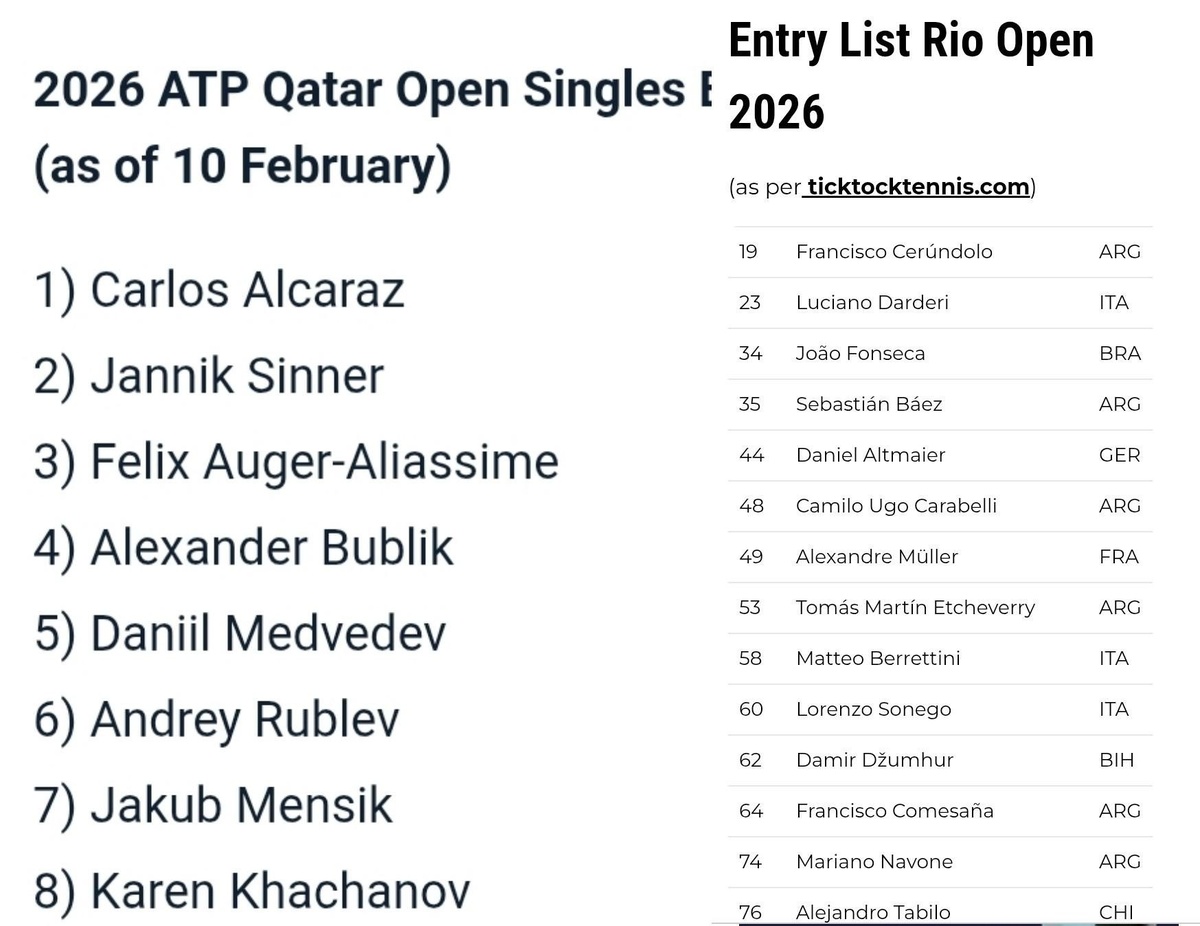 ! 🎾 В Рио будем болеть за восходящих звезд вроде Фонсеки. ✨ Но главное событие – выступление Алькараса и Синнера на Qatar Open. (Джокович снялся из-за усталости). Будет ли снова финал Алькарас против Синнера? 🤔 Или кто-то преподнесет сюрприз? Подпишись на Эйс и точка