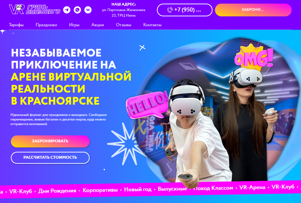 VR-арена была буквально невидимкой в поиске: сайт ранжировался только по базовым запросам вроде "VR арена", но терял клиентов по маржинальным темам — дни рождениям и развлечениям для детей. Конкуренты вроде Warpoint и Another World доминировали в каталогах Zoon, Flamp и 2ГИС, забирая горячий трафик. Мы провели полный аудит, усилили ссылочный профиль и внешнее присутствие — результат: 200+ целевых заявок, 15 ключей в ТОП-5 и ROMI 350%. Самое шокирующее: органический трафик вырос в 3 раза, заявки с SEO-канала — с 9 до 57 в месяц, а стоимость лида упала на 60%. А теперь расскажем, как мы этого добились. Отдельный фронт работ — мы создали сайт с нуля: вместо типового лендинга появился яркий, иммерсивный ресурс, который по атмосфере максимально близок к опыту игры в самой VR-арене. С первого экрана пользователь понимает, зачем ему VR, какие форматы доступны и как быстро забронировать праздник для ребенка или корпоратив. Грань будущего — VR-клуб в ТРЦ Красноярска, ориентированный на детей, п