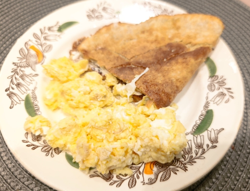 У меня на завтрак остатки овсяного блина и скрэмбл