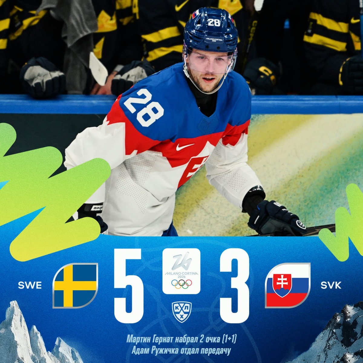 🇸🇰 Гол и передача Мартина Герната 🚂 не спасли сборную Словакии от первого поражения на Олимпийских играх, но помогли сохранить шанс на