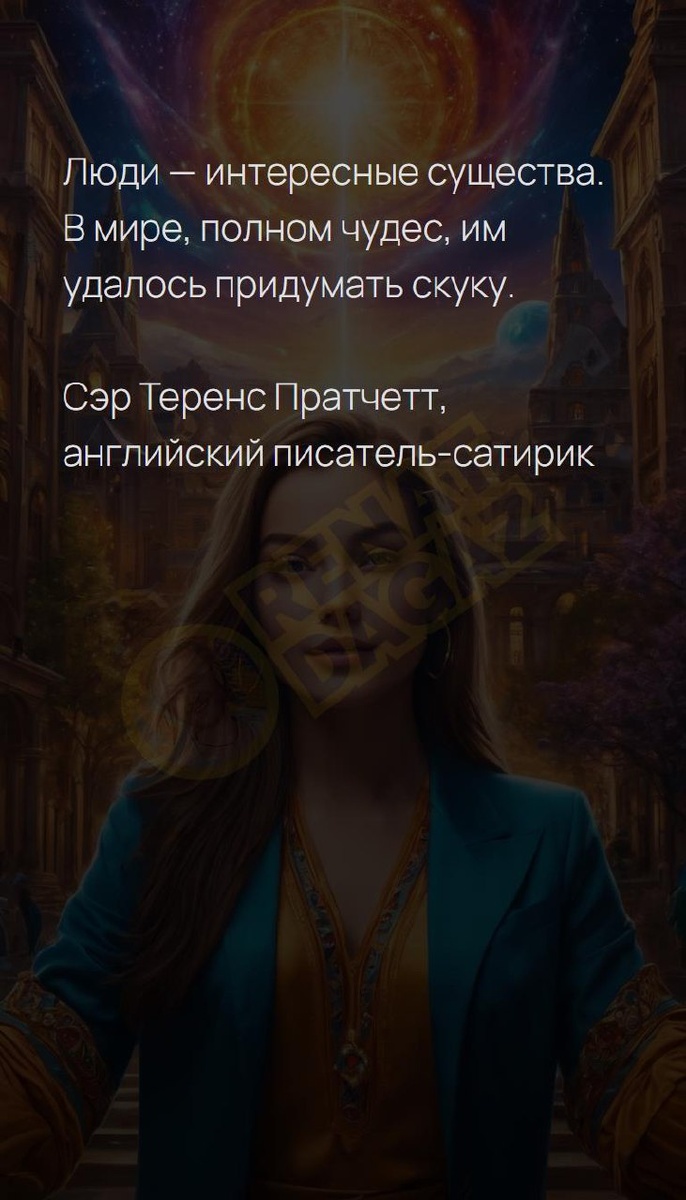 В мире, полном чудес, им удалось пр... Люди — интересные существа. В мире, полном чудес, им удалось придумать скуку. Сэр Теренс Пратчетт, английский писатель-сатирик Архитектура вашей души | Натальная карта T | VK | Pin | YouTub | Dzen #витальность #впотоке #высокиевибрации #поддержка #кодсчастья #простыерадости #установки #женскаяэнергия #искренность #14число #14февраля