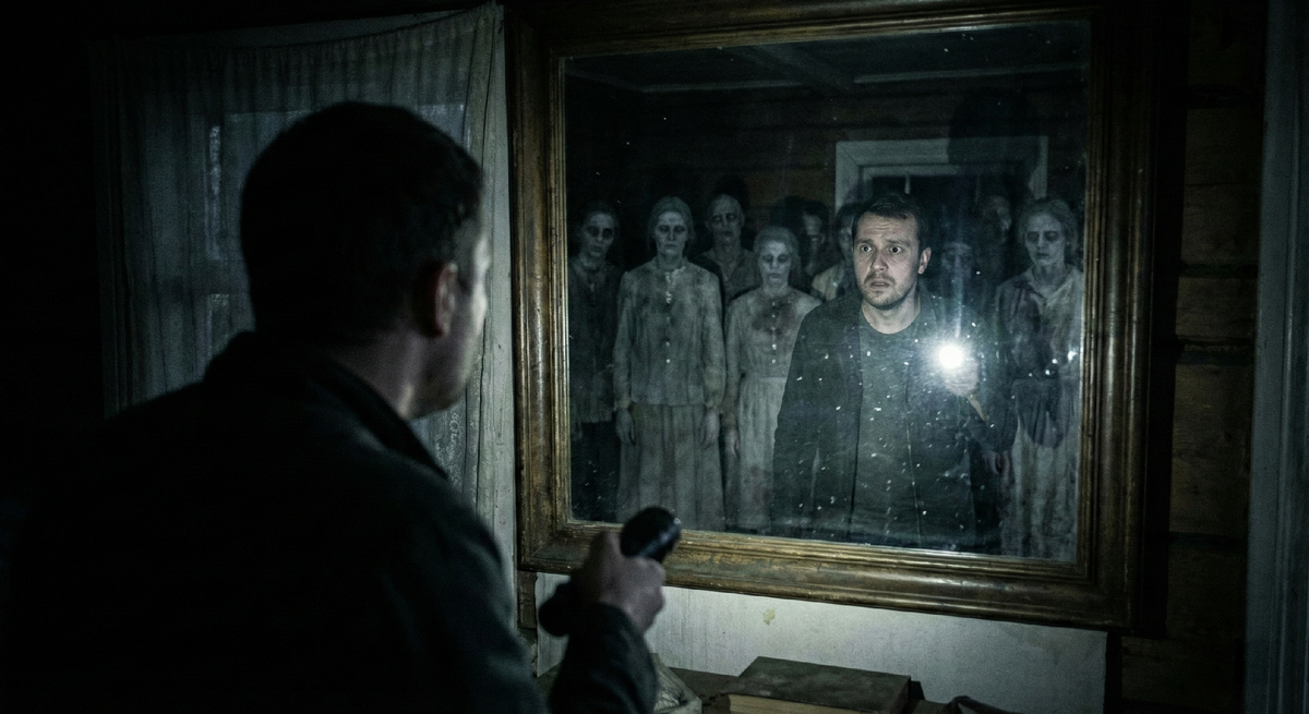 Я физически почувствовал, как ледяные пальцы коснулись моего плеча. Не здесь, в комнате, а там, в отражении. Но холод прожег меня насквозь через телогрейку.