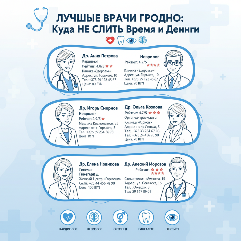 Сердце колет. Голова гудит. Спина не гнётся. И вот сидишь в поиске "врачи Гродно" — и понимаешь, что врачей тысячи. В государственной поликлинике в очереди 40 человек. В частной клинике врач встречает с улыбкой, но берёт 100 BYN за консультацию. Как выбрать врача, который действительно поможет? Кому доверить своё здоровье? Давай разберёмся по специальностям и реальным отзывам.