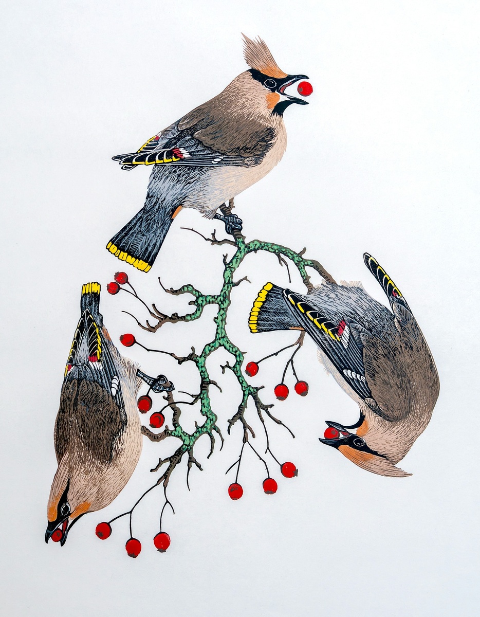 Кэролайн Эролин (Сarolin Erolin) — шотландская художница-график и мастер традиционной печатной графики, работающая в своей домашней студии в окрестностях Carnoustie (Шотландия, Великобритания). Она получила образование в области изобразительного искусства и иллюстрации, затем специализировалась в медицинской иллюстрации и визуализации, включая магистерские и докторские степени. Помимо художественной практики, она преподаёт и руководит программой магистратуры по медицинскому искусству в University of Dundee. Хотя птицы — не единственная и не главная тема её работ, они регулярно появляются в её графике наряду с другими животными. Эролин вообще интересует не «портрет ради портрета», а сама природа как система — как устроено тело, как форма связана с функцией, как внешний облик перекликается с внутренней структурой. Поэтому рядом с живым, почти осязаемым изображением зверя или птицы может появиться намёк на скелет или анатомию. В итоге её листы выглядят одновременно художественными и немно