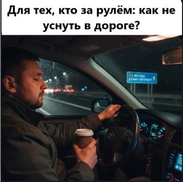 Воздух -Откройте окно или включите кондиционер. -Проветривайте салон. Звук -Включите бодрую музыку. --Поговорите с попутчиком. Паузы -Останавливайтесь каждые 1–2 часа. -При сильной усталости поспите 15–20 мин. Движение -Разминайтесь на остановках. -Делайте простые упражнения сидя (потягивания, круговые движения головой). Еда и питьё -Пейте воду. -Съешьте цитрус или яблоко. -Откажитесь от тяжёлой и сладкой пищи. Положение -Держите спину прямо. -Меняйте хват на руле. ❗️Стоп‑сигнал: пора отдыхать, если: -глаза «слипаются»; -шумит в ушах; -трудно сосредоточиться; -замедлилась реакция. ⚠️ Главное: лучше остановиться и отдохнуть, чем рисковать жизнью. #безопасность #советыводителю