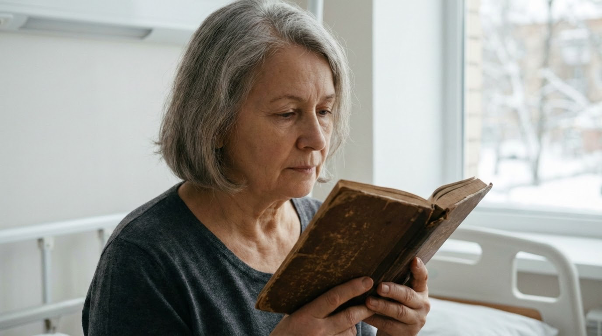 Книга лежала на тумбочке в первый день. Среди вещей, которые привезла дочь: бритва, пижама в полоску, шерстяные носки, фотография женщины с грустными глазами в простой деревянной рамке. И этот том. Потрёпанный, читаный-перечитанный, с загнутыми уголками страниц.