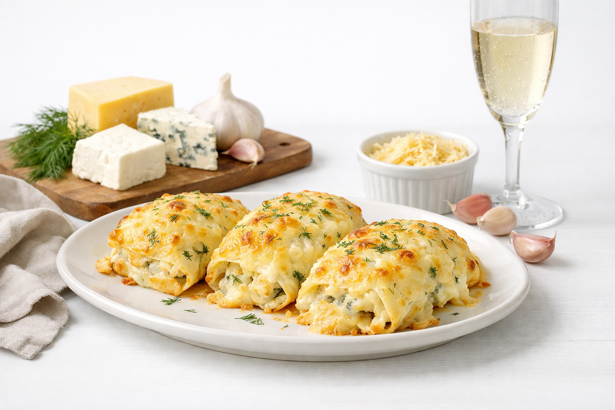 Есть такие завтраки, когда хочется вкус как в пекарне, а сил ровно на один нож и одну миску. Этот вариант спасает всегда: хрустящий лаваш, внутри нежная сырная начинка с чесноком и укропом, сверху румяная сырная шапка. Делается порционно, выглядит празднично, съедается быстрее, чем остывает.