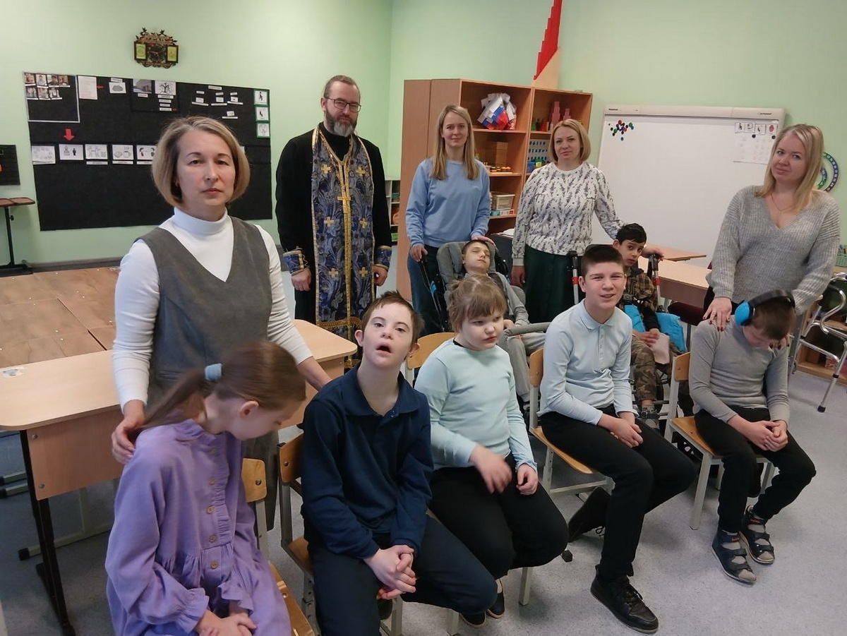 5 февраля 2026 года руководитель отдела по церковной благотворительности и социальному служению Псковской епархии иерей Александр Николаев посетил «МАОУ СОШ №47 города Пскова», где встретился с учащимися с особенностями в развитии. Батюшка тепло пообщался с ребятами, благословил их на добрые начинания и причастил Святых Христовых Таин.