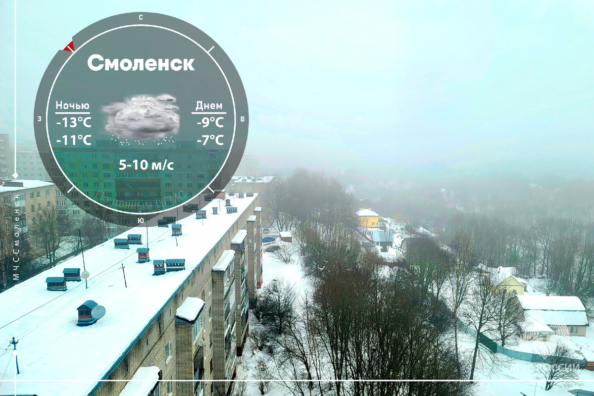 Температура: по области ночью -15…-10°C, днём -11…-6°C. В Смоленске ночью -13…-11°C, днём -9…-7°C.