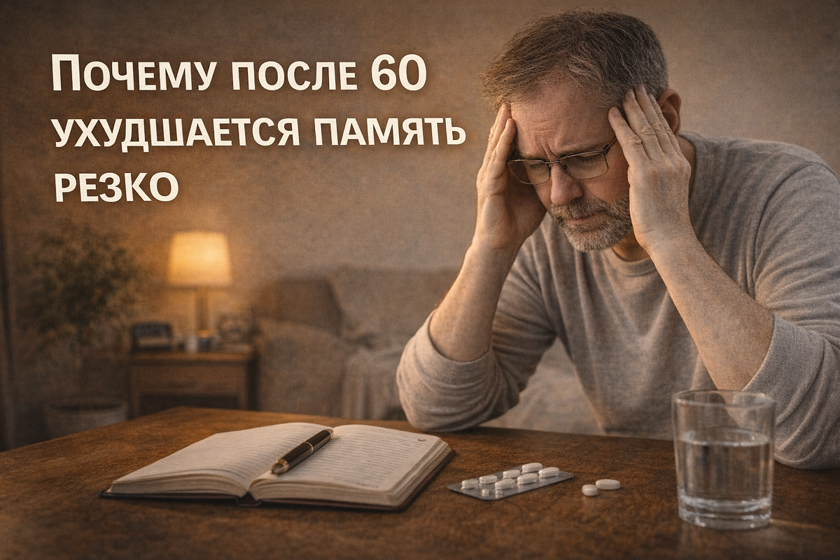Многие замечают странную вещь: до 55–58 лет память была “нормальной”. Да, что-то забывалось, но без паники. А потом — будто щёлкнул выключатель. Слова теряются, имена вылетают из головы, сложно сосредоточиться, труднее учиться новому. Создаётся ощущение, что ухудшение произошло резко. Но на самом деле процесс шёл годами. Просто после 60 он становится заметным. Разберёмся, почему так происходит. После 60 лет у большинства людей есть атеросклеротические изменения сосудов. Даже если давление “в пределах нормы”, стенки сосудов уже менее эластичны. Что происходит: Исследования показывают, что даже умеренное снижение мозгового кровотока напрямую связано с ухудшением кратковременной памяти и внимания. Проблема в том, что сосудистые изменения накапливаются десятилетиями. И после 60 они просто переходят критическую черту. У мужчин падает тестостерон, у женщин — эстрогены. Эти гормоны влияют не только на либидо, но и на работу мозга. Эстрогены участвуют в защите нейронов и поддерживают нейроплас