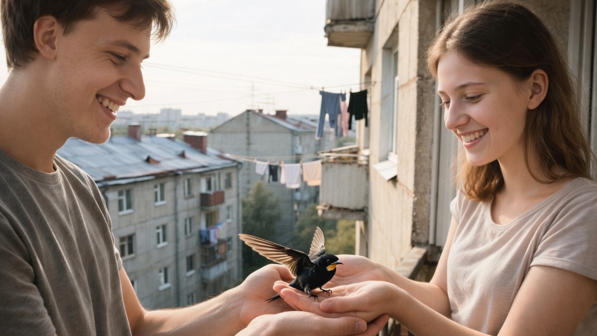 Аня представляла, как они с Димой будут пить кофе на залитом солнцем балконе. Смотреть на крыши, болтать ни о чём, строить планы. Может, повесят гирлянду – такую, с тёплым жёлтым светом. Поставят плетёное кресло. Заведут цветы в горшках. Вместо этого она стояла по колено в старых газетах и смотрела на полуживого птенца в ржавом ведре.