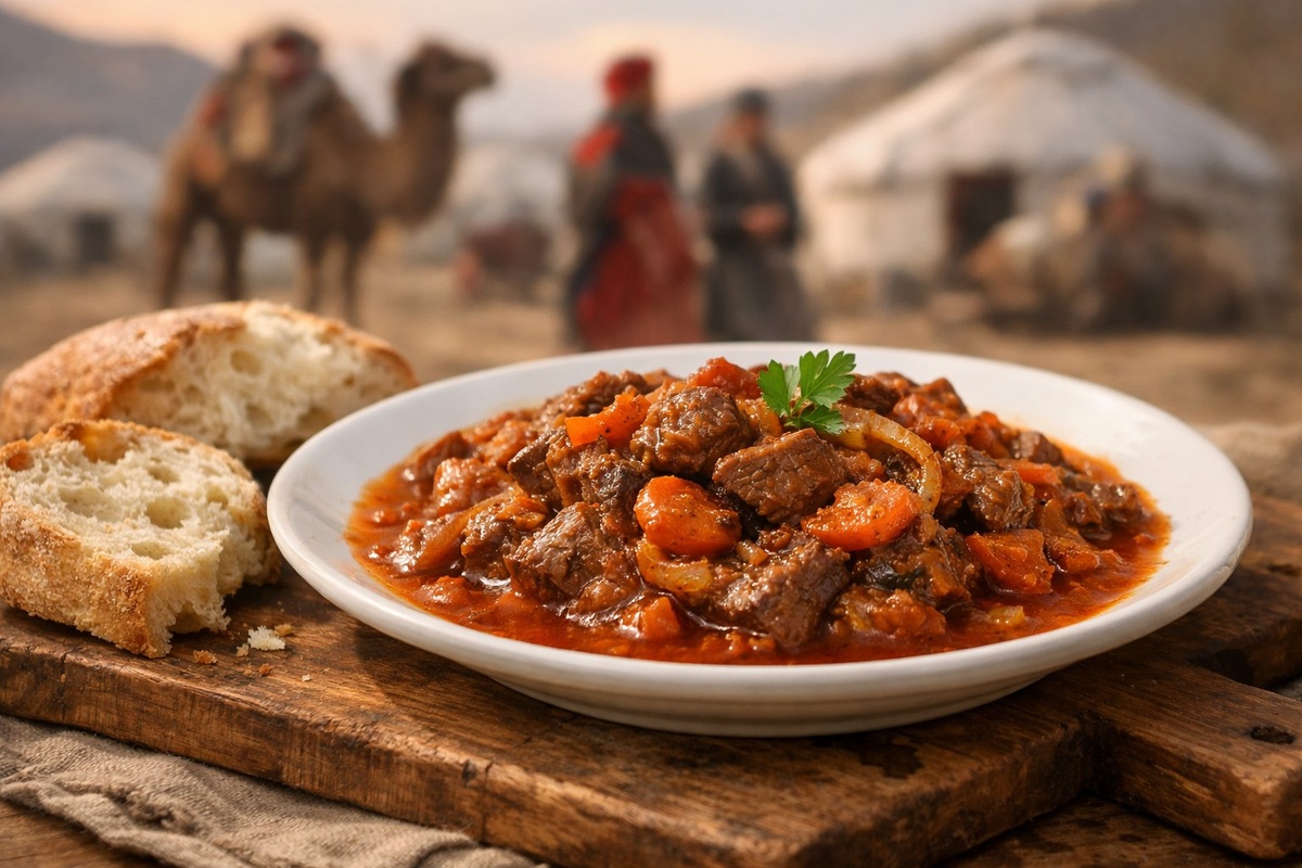 Вы когда-нибудь задумывались, какое блюдо могло согреть воина в степи после долгого перехода? Не изысканный суп, а что-то настолько сытное, простое и заряженное энергией, что одна порция давала силы на целый день. Ответ — перед вами. Это азу. Аромат тушеного мяса с солеными огурцами и картошкой — это не просто вкус, это запах истории, силы и домашнего уюта. Как скромная еда кочевников стала культовым блюдом советских столовых и семейных обедов? Сейчас расскажем, а в конце дадим тот самый рецепт, от которого невозможно отказаться. У азу — брутальное, мужское происхождение. Его родина — бескрайние степи Татарстана и Средней Азии. Представьте: суровый климат, кочевой образ жизни, долгие походы. Нужно было готовить из того, что есть, на том, что есть — в казане на костре. Мясо (чаще всего баранину или конину) нарезали удобными ломтиками, чтобы есть, не выпуская из рук поводья или оружия. Тушили с тем, что долго хранится: луком и солеными огурцами. Последние — гениальное ноу-хау! Они давали