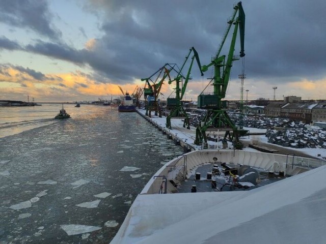 Это очень большой геморрой, скажу я вам. Когда куча фур, ограниченное время погрузки, ибо надо успеть выйти, пока погода позволяет, плюс эти самые грузовики не могут заехать на верхние палубы, потому-что скользко и посыпать нечем, куча крепежа, опять таки из-за погодных условий, да и кто-то должен ходить и разбивать лёд в лашинг поинтах. Короче, это был сущий праздник для всех.