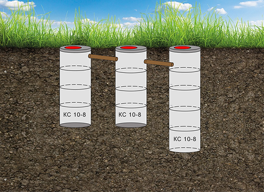 По пути отходы отстаиваются, очищаются природными бактериями и на выходе уже становятся достаточно безвредными, чтобы направить их в слой песка (как правило, последняя камера копается до слоя песка под грунтом примерно шесть колец, куда и впитываются стоки)