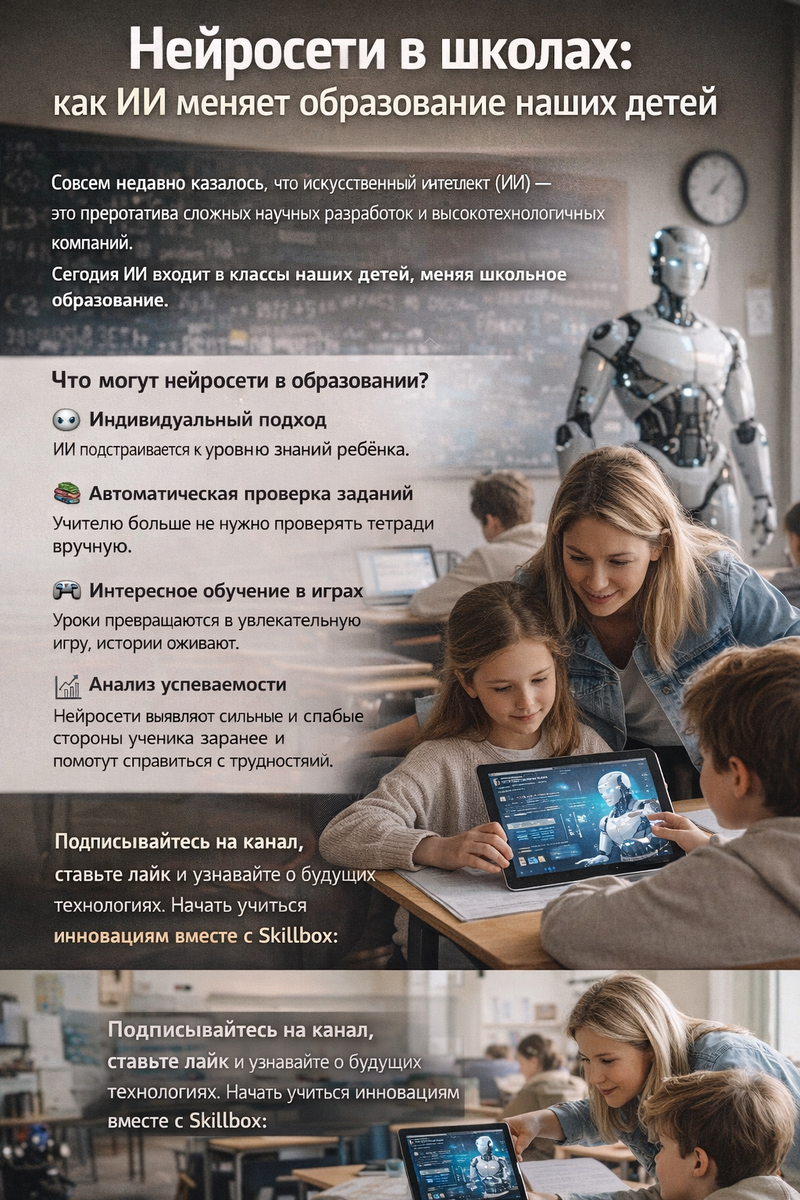 А как его самый сильный союзник. Внедрение нейросетей в школах — это не модный тренд и не эксперимент ради галочки. Это реальный инструмент, который способен изменить образование так же, как когда-то его изменили печатный станок и интернет. Давайте разберёмся, что на самом деле происходит — и почему это касается каждого родителя, ученика и педагога. Главная проблема классической школы — усреднённый подход. Учитель вынужден ориентироваться на «среднего ученика».