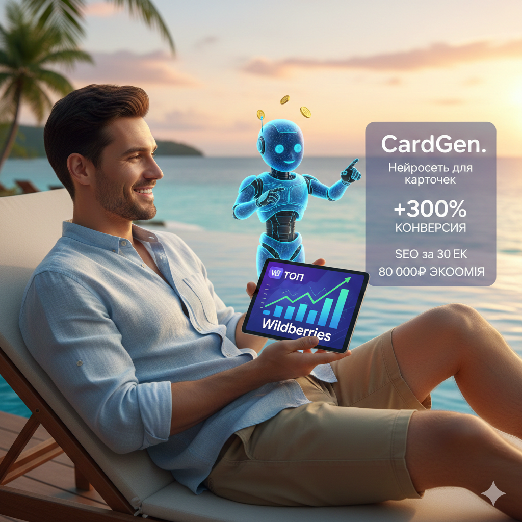 Эта статья боли и облегчения. Если вы селлер, дочитайте до конца — сэкономите кучу нервов. Еще месяц назад мой рабочий день выглядел так: Итог: Карточка готова через 10 дней. За это время конкуренты уже вымыли остатки и забрали все сливки. Все изменилось, когда я наткнулся на CardGen. Это нейросеть, которая делает за селлера ВООБЩЕ ВСЁ. 🤖 Что произошло, когда я прогнал свои товары через CardGen: ✅ SEO за 30 секунд: Нейросеть сама просканировала нишу, вытащила самые жирные запросы и вшила их в текст так, что роботы WB и Ozon просто «влюбились». Индексация прилетела на следующий день!