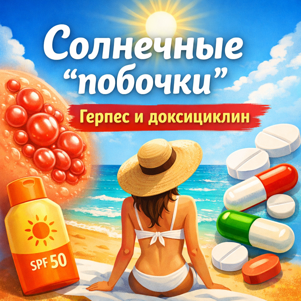 Результат - мощная фотосенсибилизация, которую доксициклин даёт на солнце.