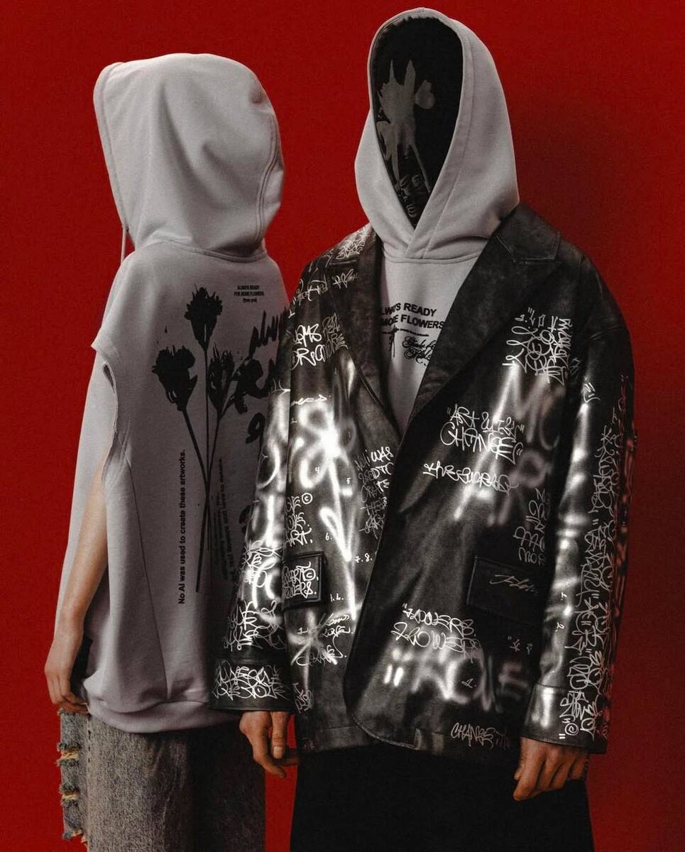 худи-жилет с капюшоном футуристичный арт рукотворного искусства, созданный в коллаборации под названием ALWAYS READY FOR MORE FLOWERS увеличенная линия плеча и углублённая пройма с необработанным краем — не ошибки, а намерения визуально вытянутые карманы не просто декор, они усложняют силуэт, как штрихи в рисунке, где каждый контур имеет смысл принты — эксклюзивная ручная работа Покраса Лампаса, точно оцифрованная, с сохранением каждой текстуры, каждого мазка это не печать это отпечаток души художника, перенесённый на ткань https://manekenbrand.com/maneken_pokras/