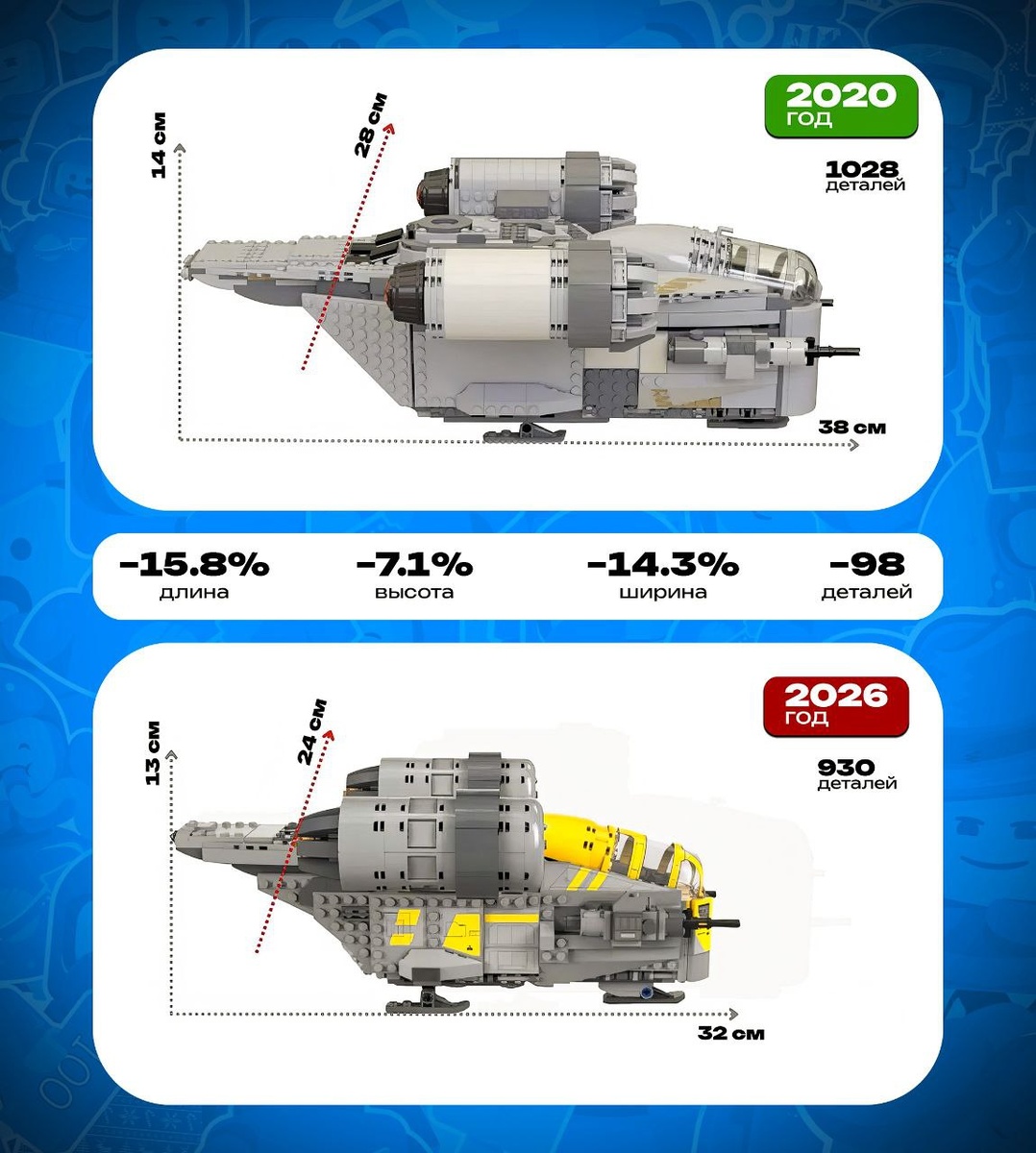 За 6 лет корабль уменьшился по размерам и количеству деталей, не получил апгрейда детализации, а вот цена выросла на 10 долларов. Выводы о LEGO Звездных Войнах делайте сами... 🙂 🤔 Рари Брик