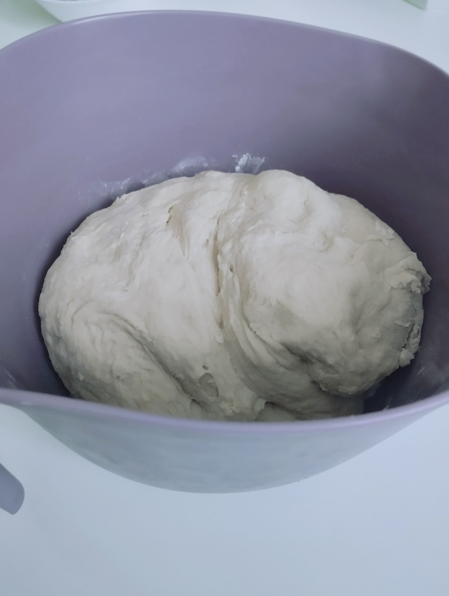 Берём кружку теплой воды и выливаем в ёмкость, в которой будет удобно месить тесто. Вода должна быть не сильно горячей, иначе подавит дрожжевые бактерии, не сильно холодной, дрожжи просто не будут "работать". Добавляем 5-7 сухих дрожжей, это обычно половина пакетика или чайная ложка с горкой. Добавляем 1 ст.л. сахара, размешиваем и оставляем минут на 5, чтобы стали