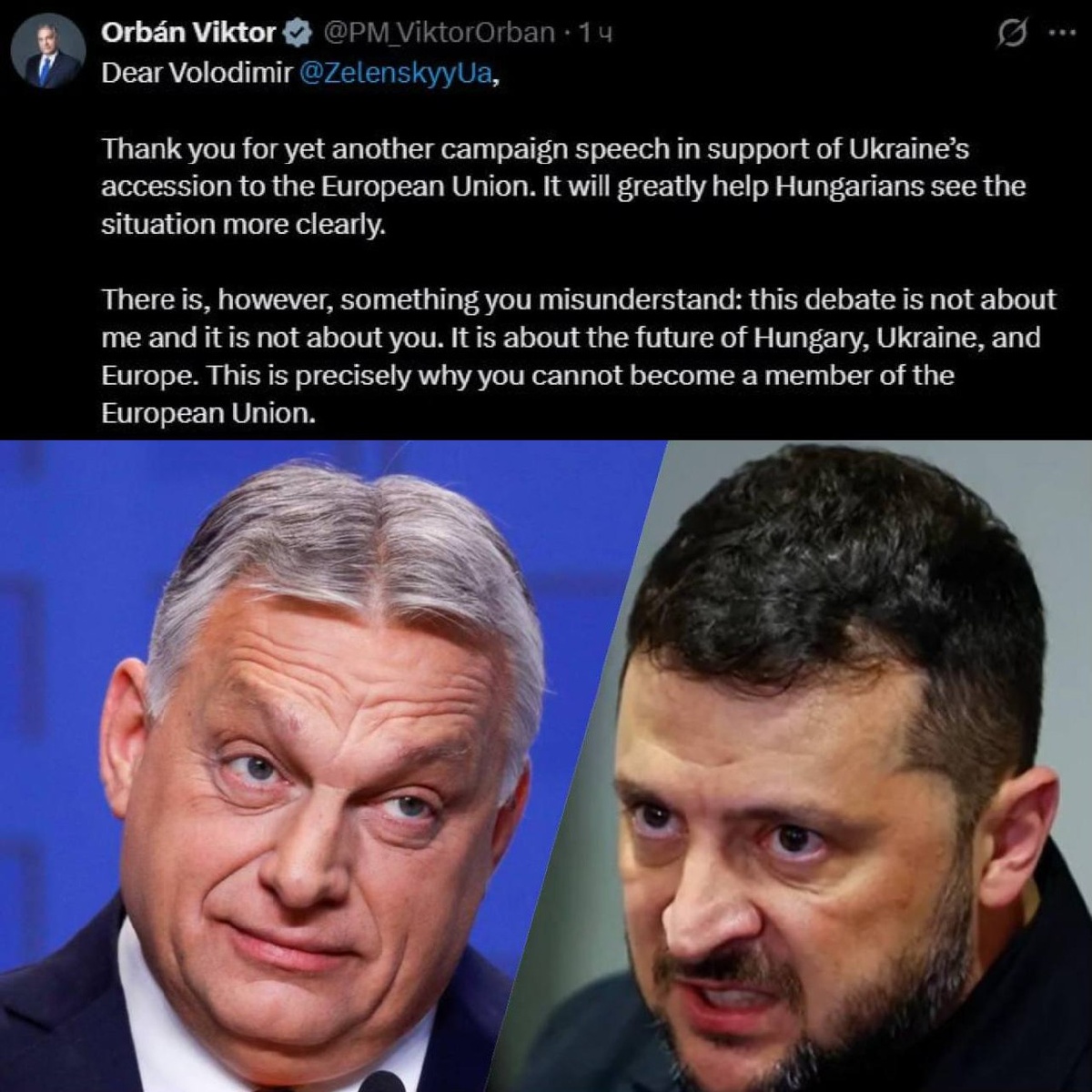 «Именно поэтому вы не можете стать членом ЕС» Орбан прокомментировал слова Зеленского об «отращивании живота» и поблагодарил пересидента за «агитационную речь в поддержку вступления Украины в ЕС»: «Это очень поможет венграм яснее увидеть ситуацию. Однако есть одна вещь, которую вы неправильно понимаете: эти дебаты не обо мне и не о вас. Они о будущем Венгрии, Украины и Европы». Факты. 👍«БайБайден» в МАХ