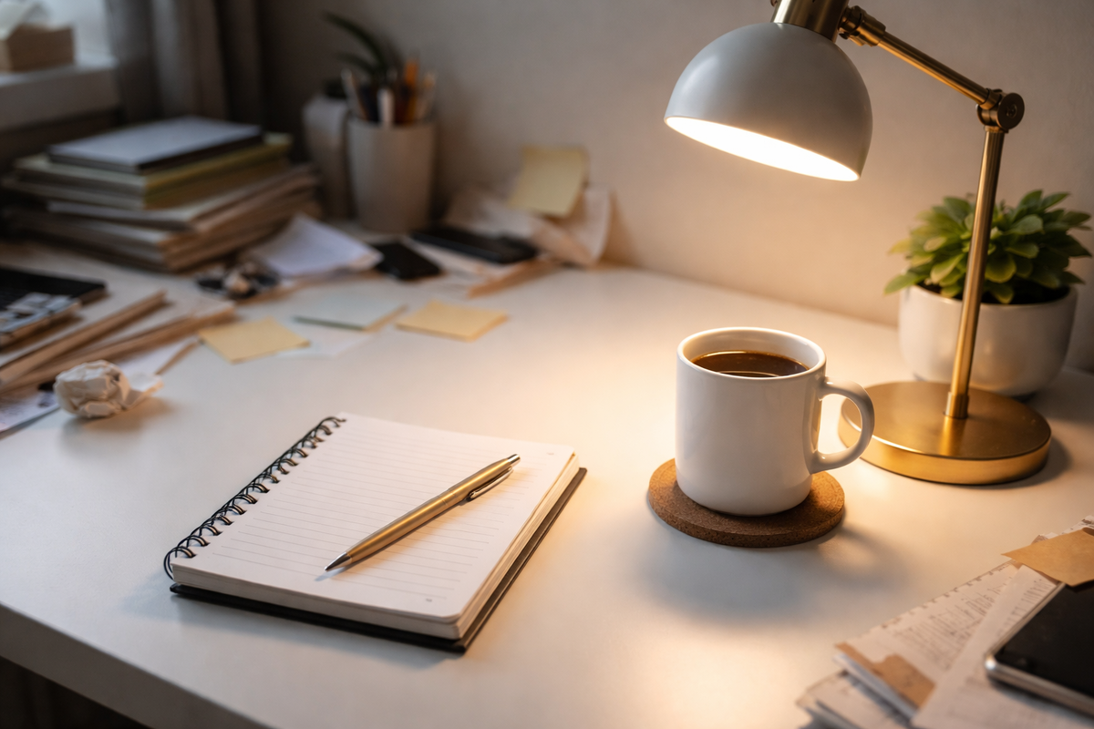 Каждый день — один угол. Через неделю вся квартира в порядке. Без насилия над собой. Порядок — это не про уборку за раз. Это про один шаг каждый день. Начни с того места, которое видишь чаще всего. Стол, на котором работаешь. Тумбочка у кровати. Кухонная столешница. Убери его сегодня. Завтра — следующий угол.