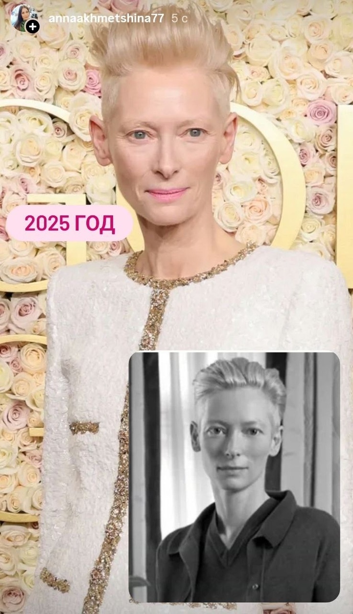 Удивительно, но кто-то до сих пор возьмет да и напишет: а что вы хотите? В 40 лет человек стареет, 5, 10, 15 лет (нужное вставить) же прошло! И смех и грех, видимо, новенькие) Тильда Суинтон, 65 лет. Череп такой же, как и 40 лет назад. Похудела разве что немного. Офигенная, конечно!😍 🔥