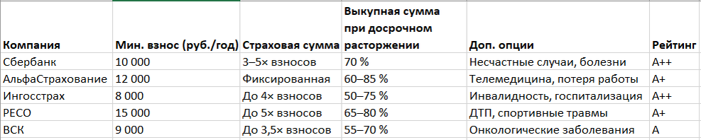 если возможны досрочные траты, ищите программы с высокой выкупной суммой («АльфаСтрахование»). - Проверьте доп. опции: